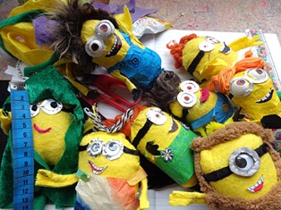 Een gele of paarse Minion, alle knutselmaterialen, een digitaal fotoalbum, limonade en versnapering en een met de hele groep gemaakt