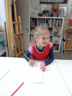 Vanaf 7/8 jaar : basistechnieken: tekenen, schilderen en knutselen. Met wol pompons maken, stof knippen en, vingerhaken, knoopjes bevestigen.